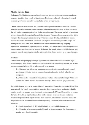 Notes targeted towards answering exam questions that I created based off lectures, readings and in-class discussions. Covering: Middle-income Trap, IPNs, Regional integration, Economic Shocks, Economic Stability, as well as examples from South Korea, Singapore and India.