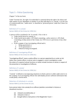 Topics covered include: Police Questioning, Bail, Identification Evidence, Trial of Indictable Offences, Machinery of Prosecution, and The Trial Process and Defence Proceedings.