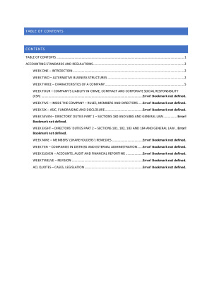 Full copy of ACL notes. Covers podcasts, tutorial notes, textbook readings, legislation readings and various other things collected from a wide range of sources. For a summarised version that I took into my final exam, check out my other listing. Table of contents as shown in sample covers all topics included. Even though some don't have page numbers, this is because those topics are not in the sample, but they are in the notes.