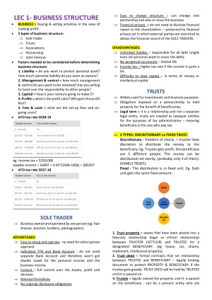 - this note covers topic 1-5 (statutory law + case law included) --> topic 1: business structures --> topic 2: characteristics of company --> topic 3: CSR --> topic 4: Inside the company --> topic 5: ASIC, fundraising, and disclosure - the note is taken in accordance with the podcast given (i literally write everything in the podcast)