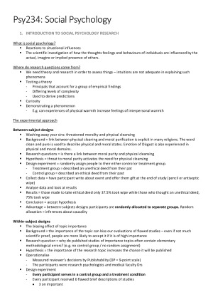 Well summarised notes integrated into tables, diagrams and pictures when necessary to make it easier to understand. Tutorial and Lecture Topics covered -Introduction to Personality Research -Post-Freudian theories -Neuropsychoanalysis -Trait approaches to personality -Dynamic approaches to personality -Evolutionary theory & personality -Humanistic & positive psychology -Personal construct theory -Personality assessment -Introduction to Social Psychology Research -Attributions -The social self -Emotion -Disgust -Group influence -Power and status