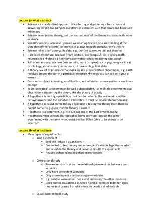 Did the course over the summer term for 2018 and 2019. This course was fully online so my notes are based on each of the lecture recordings that were uploaded. The format of my note is dot points. The 15 lectures in total are: what is science? what is clinical psychology? what is anxiety? what is mood and stress? what is classical conditioning? what is operant conditioning? what is exposure? what is cognition? what are cognitive biases and problematic thoughts? what are the roles of genetics in low mood and anxiety? what is behavioral activation? what are the negative impacts of drugs on mental health? what is social anxiety? what is perfectionism? what is the function of sleep?