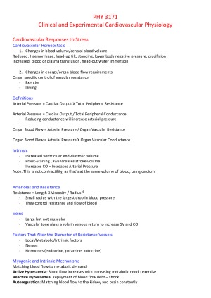PHY3171 Cardiovascular Lecture/Exam HD Notes