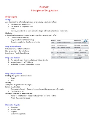 PHA3011 Lecture/Exam and Drug List HD Notes