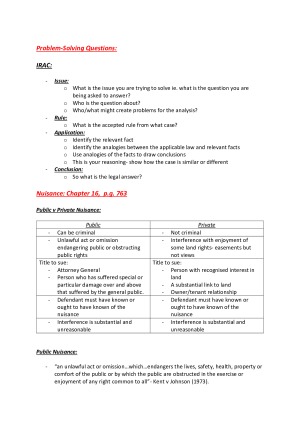 Includes notes on following topics: - Nuisance - Elements of Negligence - Duty - Breach - Causation - Defences - Damages - Concurrent Liability - Breach of statutory duty