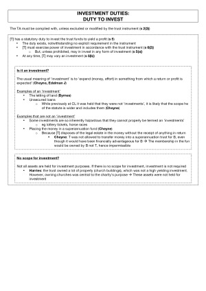These were the notes I used for the Trusts law exam in Semester 2 2018. They are written to help you answer a problem question in a well-structured manner. All topics are included: • Introduction and Classification of Trusts • Certainty of intention, subject and object • Quistclose Trusts • Trust Structures • Formalities and Constitution • Duties and Powers of Trustees • Defences and limitations of liability • Rights of trustees • Rights of beneficiaries • Remedies for breach of trust