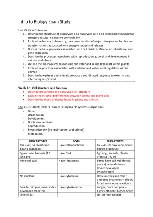 Detailed notes consisting of information presented in both the lectures and textbooks. Pictures and diagrams included. Perfect for exam study! Topic list: - Cell Structure and Function - Plasma Membrane Structures - Biological Chemistry and Energy Transformation - Movement Across Membranes - Cell Division - Genes and Inheritance - Plant Reproduction - Plant Structure - Plant Coordination - Plant Requirements - Animal Nutrition - Animal Reproduction - Animal Respiration - Animal Excretion - Ecology Revision Topics