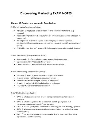 List of Chapters to study for the exam: [Book: MKTG10, 10th Edition, Lamb, C., Hair, J. and McDaniel, C. Cengage] Chapter 12: Services and Non-profit Organisations Chapter 15: Marketing Communications Chapter 16: Advertising, Public Relations & Sales Chapter 18: Social Media & Marketing