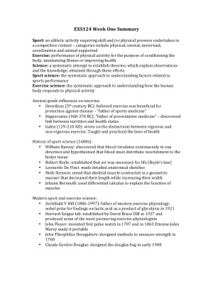 Lecture notes for whole semester; week 1-12 Topics included: 1: Sport science history 2: Sub-disciplines of sport/functional anatomy 3: body composition and anthropometry 4: Cardiovascular health and fitness 5: muscular health and fitness 6: preventing sport injuries 7: injury movement, moving the athlete and taping 8: sport nutrition, drugs in sport 9: illnesses and injuries, and medical conditions