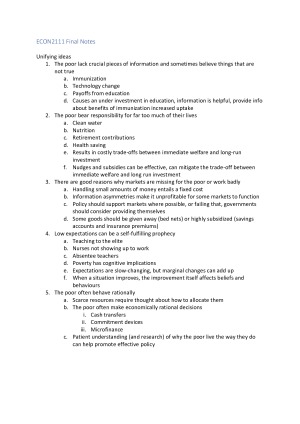 Notes from all lectures. Very detailed and nicely summarised under each topic. Topics include: - population - insurance - credit - savings - migration - environment and development - public goods