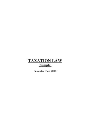 These notes were used to achieve a HD on the 2018 Semester Two Taxation Law Exam. They include legal principles and problem question steps for all topics taught during that semester, including: - GST - Ordinary Income - Exempt and Non-Assessable Income - Deductions - Capital Allowances - Treatment of Trading Stock - Blackhole Capital Expenditure - CGT Regime - Taxation of Companies - Superannuation
