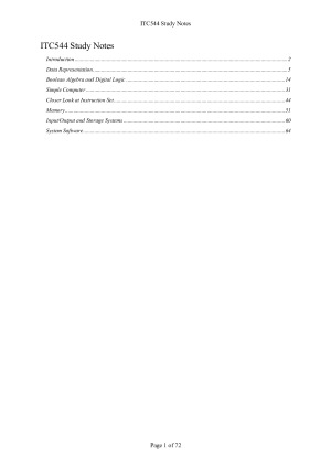 Topics: - Introduction - Data Representation - Boolean Algebra and Digital Logic - Simple Computer - Closer Look at Instruction Set - Memory - Input/Output and Storage Systems - System Software Readings: - ITC544 Textbook - Null, L., & Lobur, J. (2014). The Essentials of Computer Organization and Architecture (4th ed). Massachusetts, USA: Jones & Bartlett Learning. ISBN: ISBN-13: Weeks Covered: 12 weeks (full coverage - all topics)