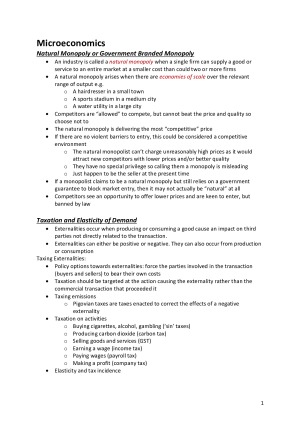 Notes on macro and micro economics. Includes visuals and text. TOPICS: Natural Monopoly or Government Branded Monopoly Taxation and Elasticity of Demand Floor Prices and Minimum Wage RBA and Monetary Policy Fiscal Policy and Deficit Spending Long Term Growth