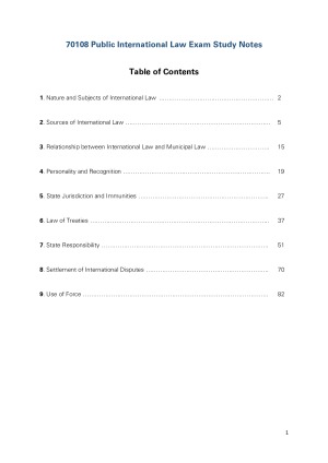These notes cover all 9 subjects for Public International Law. This includes an introduction of each subject matter, and the relevant legislation and critical cases for each topic. These were very helpful for the exam, and helped get me a HD.