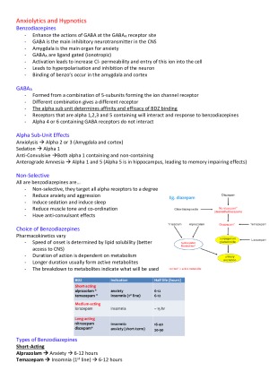 My notes are a comprehensive combination of both lecture content and practicals, allowing me to get a HD for the subject. With hard work and these notes, you can too! The notes were created throughout the semester and are in-depth and thorough, with diagrams to consolidate knowledge. They are not rushed and very detailed, with each lecture on 2 pages (some longer lectures span to 3-4 pages) The themes covered are: Theme 1: Principles of Neurotransmission Theme 2: HPA and Gonadal Transmission Theme 3: Drugs for Psychological Disorders Theme 4: Metabolism Theme 5: Neurological Diseases Theme 6: Anaesthetics The notes are designed with each new lecture having a title coloured in red. The titles in blue are sub-topics/drugs within that lecture. The drug list is not included in the word count, so over 15,000 words!
