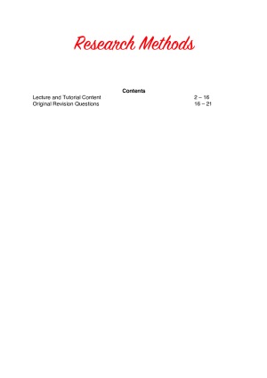 These notes are comprehensive and concise, covering all content (lectures, tutorials and readings), including both multiple-choice and short-answer revision questions that I wrote myself. They will be effective for anyone looking to ensure their bases are covered, or wanting practice questions to revise with before the exam. Topics covered include: - The Scientific Method - Study Designs (Between, Within, Survey, Qualitative, Mixed-Methods, Observational) - Research and the Internet - Using Existing datasets - Assessing Research - Research Integrity and Ethics - Epidemiological Research