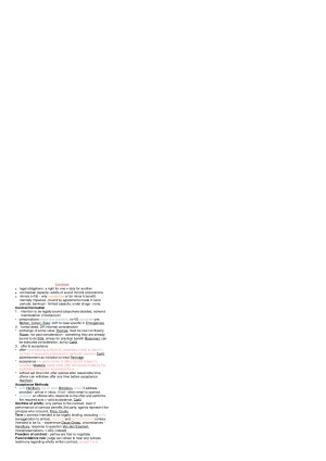 Principles of Business Law Exam Preparation Cheatsheet (colour-coded, double-sided A4) Topics: Week 1 - Not examinable Week 2 - Legislation Week 3 - Case Law Week 4 - Contract Formation Week 5 - The Terms of A Contract Week 6 - Contract Performance and Breach Week 7 - Remedies for Breach of Contract Week 8 - Vitiating Factors Week 9 - The Australian Consumer Law Week 10 - Tort Law Week 11 - The Law of Agency: The basics Week 12 - Revision The Cheatsheet is arranged in three columns. The first page is the condensed concepts with corresponding case name underlined, and the second page contains all the case studies with prompt keywords and ratio. The preview only shows a snippet of the full cheat sheet. The tests one would use to determine a particular outcome are coloured pink.