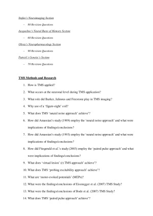 I created these revision questions as a way of preparing for the Biological Psychology exam. This document contains 300 (!) revision questions that comprehensively address the entire course content in painstaking detail. These questions helped me to achieve a high H1 for the subject (and will do same for you!!).