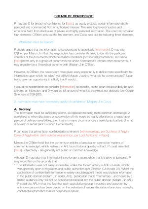 These notes can be used in the exam. They include: - Rationale for the law - Rule (what the law is) - Potential arguments - Individual or dissenting judgements where relevant to discussion This covers topics of: - Breach of confidence - Breach of fiduciary duty - Personal remedies - Proprietary remedies - Assignment of property rights in equity as taught by Monash in 2019.