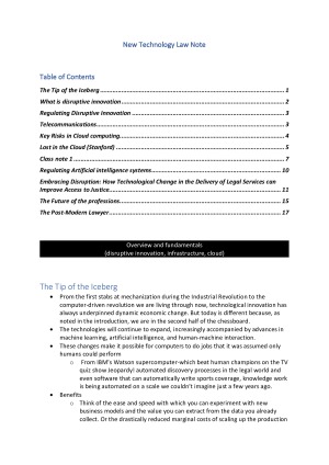 This is a summary of the new technology law class readings. I used this note to formulate and write my essay.
