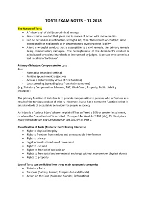 Topics Include: * The Nature of Torts * Legislative Tort Reforms * Damages * Trespass to the Person * Trespass to Land * Defences to International Torts * Vicarious Liability * Duty of Care (Negligence: Breach, Causation, Remoteness) * Special Duty Situations (Omissions, Pure Mental Harm) * Defences to Negligence * Exclusion Clauses * Limitation Periods * Private Nuisance * Breach of Statutory Duty