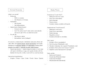 Topics covered: Animal Phylogeny, Body Plans, Porifera, Cnidaria, Platyhelminthes, Bilateria, Protostomia, Lophotrochozoa, Mollusca, Annelida, Nematoda, Arthropoda, Echinodermata, Chordata Topics covered within span of a 10-week semester.