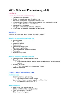 Includes Wk1 - QUM and Pharmacology Wk2 - Cells and The Human Body Wk3 - Human Development and CNS Wk4 - PK and PD WK5 - PNS, ANS and CNS Wk6 - Urinary Incontinence, Dementia and Parkinson's Wk7 - Endocrine System Wk8 - Structure and function of reproductive systems Wk9 - Reproduction Physiology Wk10 - Immune System and Inflammation Wk11 - Diabetes and Infection