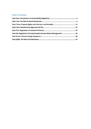 These notes include summaries for each topic taught in BTX3100 which are extremely useful for the exam. Topics covered include: 1. Introduction to Sustainability Regulation 2. The Role of International Law 3. Property Rights and Common Law Remedies 4. Development Approval and EIA 5. Regulation of Industrial Pollution 6. Regulation of Contaminated Land and Waste Management 7. Climate Change Responses 8. The Role of Corporations