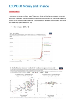 For the thoroughly enjoyable and informative ECON350 unit, these comprehensive study notes are based on Lecture notes, Tutorial exercises and Homework questions as well as a detailed summary of all relevant textbook material. With the right notes and preparation, you can perform well in ECON350 unit across the assignments and exams throughout the semester. My notes cover all difficult questions that can be covered within the unit as well as providing accurate diagrams for all Interest Rate Swap models and Bond and Equities Pricing Strategies. As a general overview, topics included are: The Evolution of Money Markets, Interest Rates, Central Banks and Monetary Policy, Money, Bond, Equity and Derivative Markets, Behavioural Finance and Modern Forms of Currencies.