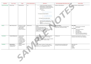 Look no further for your revision! this will help you get through the semester with an easy reference point for ALL your notes! This drug glossary contains ALL of the drugs that were outlined in this subject! Refer to this for the drug, its trade name, class, source, target, route of administration, mechanism of action, what it is used to treat/ desired physiological effect, adverse effects I have also posted lecture notes for this subject - refer to those for additional information! This drug glossary is the perfect accompaniment to that!