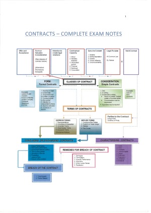 Comprehensive Tutorial and Exam Notes for Contract Law including: - Offer - Acceptance - Consideration - Promissory Estoppel - Intention - Certainty / Completeness - Capacity - Privity - Formalities - Statutory Illegality - Common Law / Public Policy Illegality - Express Terms - Extrinsic Evidence / Parole Evidence Rule - Implied Terms - Construction / Classification - Misrepresentation - Duress - Undue Influence - Unconscionable Conduct - Recession - Termination by Performance - Breach and Repudiation - Termination by Agreement - Frustration Notes are detailed and extensive. Perfect for making your own summaries to take into exam or to help with problem questions and assessments.