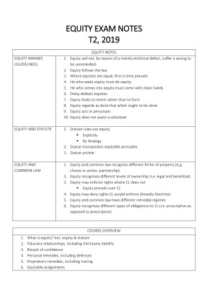 Equity Exam Notes with Steps, Prompts, and Case Summaries. Topic List: 1. Breach of Confidence 2. Breach of Fiduciary Duty 3. Personal Remedies 4. Proprietary Remedies 5. Tracing 6. Assignment of Property Rights