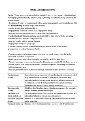 Study notes for Family and Children's Nursing (92319)- received a mark of 80 for this subject using these notes.