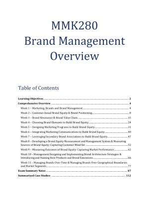 88 HD overall grade Up to date notes recently completed in Trimester 2 2019. Prevent wasting time creating your own notes and learn the entire unit in one organised and structured document. Information is tied back to each learning objective with clear titles. I've combined two major documents: 1. Comprehensive notes covering all weeks and topics - Use this to learn and develop thorough understanding - Significantly helps with assignments (HD grades) 2. Summary notes covering all weeks and topics - Use this to prepare for the exam and reinforce key concepts Also inclusive within these notes: - Table of contents - Checklist of learning objectives - Summarised examinable case studies - Seminar answers
