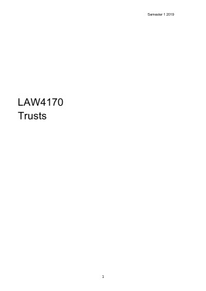 This is a set of comprehensive notes that can be used for the final exam. These notes comprise my lecture, tutorial and reading notes. These notes cover all the topics on the reading guide: introduction, certainty of intention, certainty of subject matter, certainty of objects quistclose trusts, charitable purpose trusts, formalities, constitution, trustees' duties, rights of trustees, rights of beneficiaries and remedies.