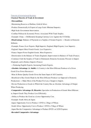These notes are designed to well equip you for the unit, based on the core content, they are comprehensive, succinct and cover the 1. Globalisation and IB 2. Economic, Legal Systems & Transition Economies 3. Theories of International Business 4. The External Sector 5. Foreign Exchange Markets 6. International Monetary Systems 7. Government and Trade Policy 8. Cooperation Amongst Nations and Regionalism 9. Country Risk Analysis 10. Entry Strategies and Foreign Direct Investment I have included a table of contents for ease of access, using these notes I was able to achieve an 80 HD in the unit; which I completed during the second trimester/semester of 2019.