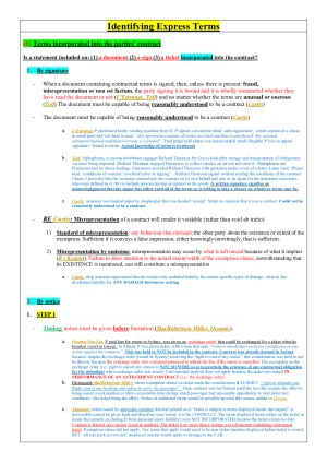 Very comprehensive notes of the course. I enrolled in LLB1170 in my second year (1 year after starting law), so these notes have been developed with the skills that i learnt in first year law, giving them a competitive advantage over the notes of other contract law students. Topics: - Express terms - Construing terms - Implied terms - Frustration - Termination - Remedies - Misrepresentation - Misleading and deceptive conduct - Abuse of power - Rescission and statutory remedies