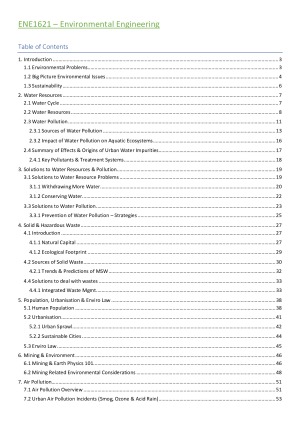 ENE1621 Notes: Environmental Engineering course and exam summary notes.