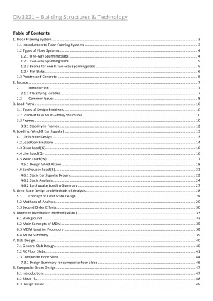 CIV3221 notes: Building structures and technology summary notes with worked solutions.