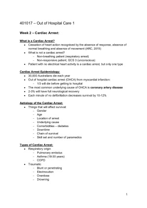 Complete summary notes for all 14 weeks of out of hospital medical care 1. These notes also include images to help explain concepts and provide context. See the sample for more information. Topics include - cardiology, respiratory and neurology These notes helped me to achieve a HD in this unit and I hope they can do the same for you. *Disclaimer: NSW Ambulance pharmacology protocol has been used. An updated version has been released since the writing of these notes.