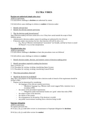 Comprehensive exam notes on all topics: JURISDICTION 2 STANDING 4 REASONS 5 ULTRA VIRES 6 PROCEDURAL FAIRNESS 11 JURISDICTIONAL ERROR 14 REMEDIES 16 PRIVATIVE CLAUSES 18 TRIBUNALS & MERITS REVIEW 22