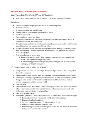 Notes for each of the lectures as well as notes from each of the weekly tutorials. Topics Include: -Asian Views of the World in the 13th and 14th Centuries -Cannibals and Converts: North America through European Eyes -Climate, Disease and Populations: 14th Century Europe -Conversion stories; from the Franciscans to the Jesuits in Japan -Cultural Migrations: Korea and Japan in the Great East Asian War -European Social Hierarchies -Faith in Florida: The Timucua, Calusa, Spanish and French -Islam, Africa and the Indian Ocean in the 13th and 14th Centuries -Mapping European Imaginations -The Ottoman Empire -Peasant Societies, Asian Varieties: Ming China -Portuguese Pirate Traders in the Indian Ocean -Power and Culture in Heian Japan -Slavery and the Slave Trade -Europe, the Americas and the Columbian Exchange -The Eruption of Laki and European Revolution -The European takeover of the slave trade: Africans in the New World -The Globe at the end of the 18th Century: Africa and Asia -The Mughals and peasant society in India, 16th-17th Century -The Vikings -The VOC in the Indian Ocean; Slavery in Indonesia -Trade, rights and war: representative government in Europe -The Rise of the Merchant Class -England and Scotland: The path to civil war -Tutorial reading notes for weeks 3,4,5,6,8,9,10,11,12 Please note these are not in lecture order.