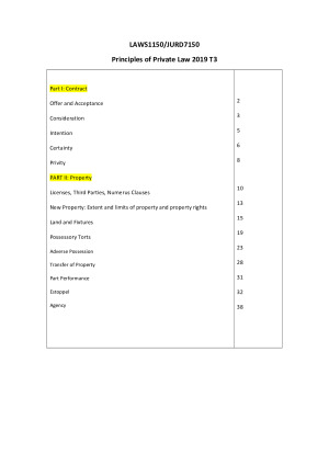 - T3 2019 JURD7150 summarised, detailed DISTINCTION notes and cases. Take in to finals exam.