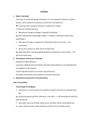 - notes from week 4 to week 9 (5 weeks) - topics includes: Learning, Memory, Language and Thought, Cognitive development, Social development. - useful for both psychology quizzes and exams