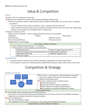 This doc has been compiled from the lectures, tutorials, and edge videos. It contains the content needed for a 7. I scored 15/15 and 14/15 the two quizzes and received a GPA 7. Content covered: Value, competition, and strategy (week 1) Business process management (week 2) BPM lifecycle & process modelling (week 2) BPMN (week 2-3) Information systems development (ISD) (week 4) Agile ISD (week 5) SCRUM requirements analysis (week 6) Generic project management (week 6) Critical path analysis (week 6) Excel Good luck!