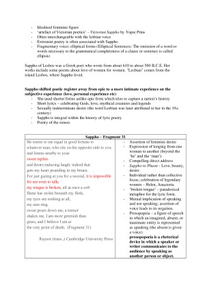 - 63 pages HD quality notes - notes complied for the new trimester structured course - extremely detailed with analysis of texts which are examinable in the course - written in a concise and easy to understand manner - summary of all the important content required for the assignments + additional research and in depth analysis which is often favoured in the HD range - important content from ALL lectures and tutorials - overview of all the English techniques covered and a summary of the the historical background studied - clearly structured with headings Content: - Sonnets + analysis of poesis, poetria and versification - Abstract formalist theory + formalism - use of prosopopoeia - comprehensive detail on 'Jane Eyre' (required for mandatory major assessment task) - poetic shift towards modernity and modernism - Sapphic poems - use and importance of the iterative 'I' - imagism poetry - Poe's doubleness, phrenology and mesmerism - 19th century critical reception + the concept of the divided self (and much much more!!)