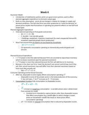 Comprehensive set of ECON1002 notes that was awarded a 91% High Distinction Mark. Details fundamental macroeconomic concepts concisely so that they are easy to understand. Mathematical concepts are also discussed broadly. Written by a Finance and Economics (Honours) student. Topics covered: - GDP & Inflation - Labour Market & Employment - Unemployment & Okun's Law - Keynesian Model & PAE - Fiscal & Monetary Policy - Money Supply & Inflation - AD/AS Model - Economic Growth Models - Open Economy & Forex Market