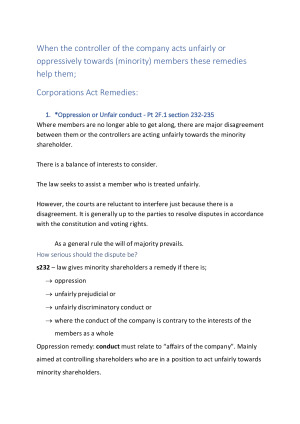 Final exam content notes Topics 9- 13 9. Insider Trading 10. Corporate Management 11. Officers/Directors duties 12. Members Remedies 13. Corporate insolvency Includes case summaries and extra questions( for certain topics)