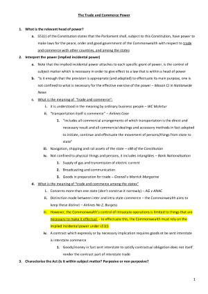 STEP BY STEP GUIDE FOR EACH PQ IN EXAM Topics: - Constitutional Interpretation - Corporations Power - Freedom of Interstate Trade - Tax/Grants Power - Defence Power - Implied Freedom of Political Communication - Intergovernmental Immunities