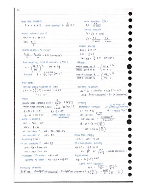 These are complete CHEM10003 notes. They are handwritten, but scanned and very readable and neat. Sample is provided to check the quality. What's included: - lectures from week 1-12 - formula "cheat sheets" - summary for different topics ( VSEPR, packing and structure, thermodynamic laws, etc.) - problems and solutions from the lectures and textbook - complete diagrams - hand drawn but neat (with ruler and different colours) Topics covered: - module 1: organic chemistry - module 2: physical chemistry - module : inorganic chemistry: primary bonding and acids and bases - module : inorganic chemistry: structure and packing note: the resolution here is poor due to file size limitations. after purchasing, if you wish to get a much better resolution, please contact me.